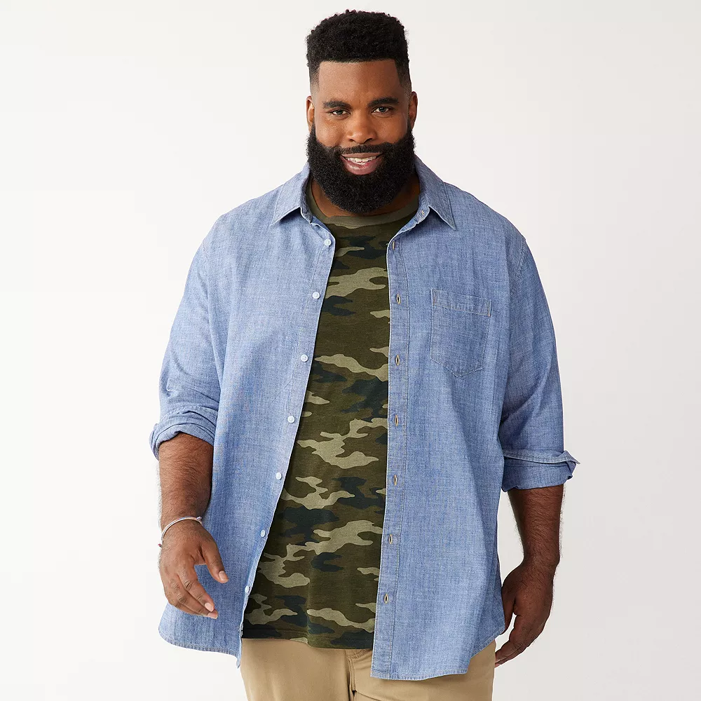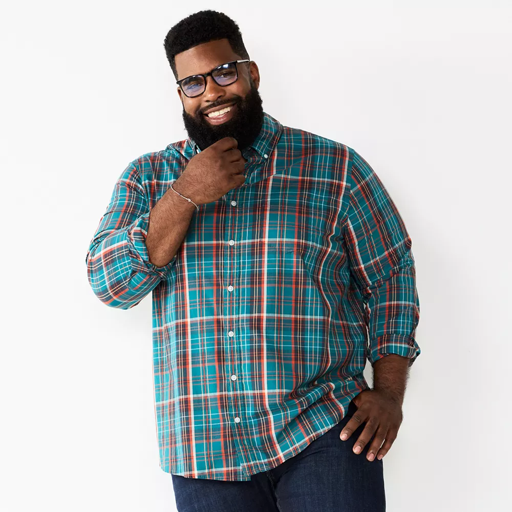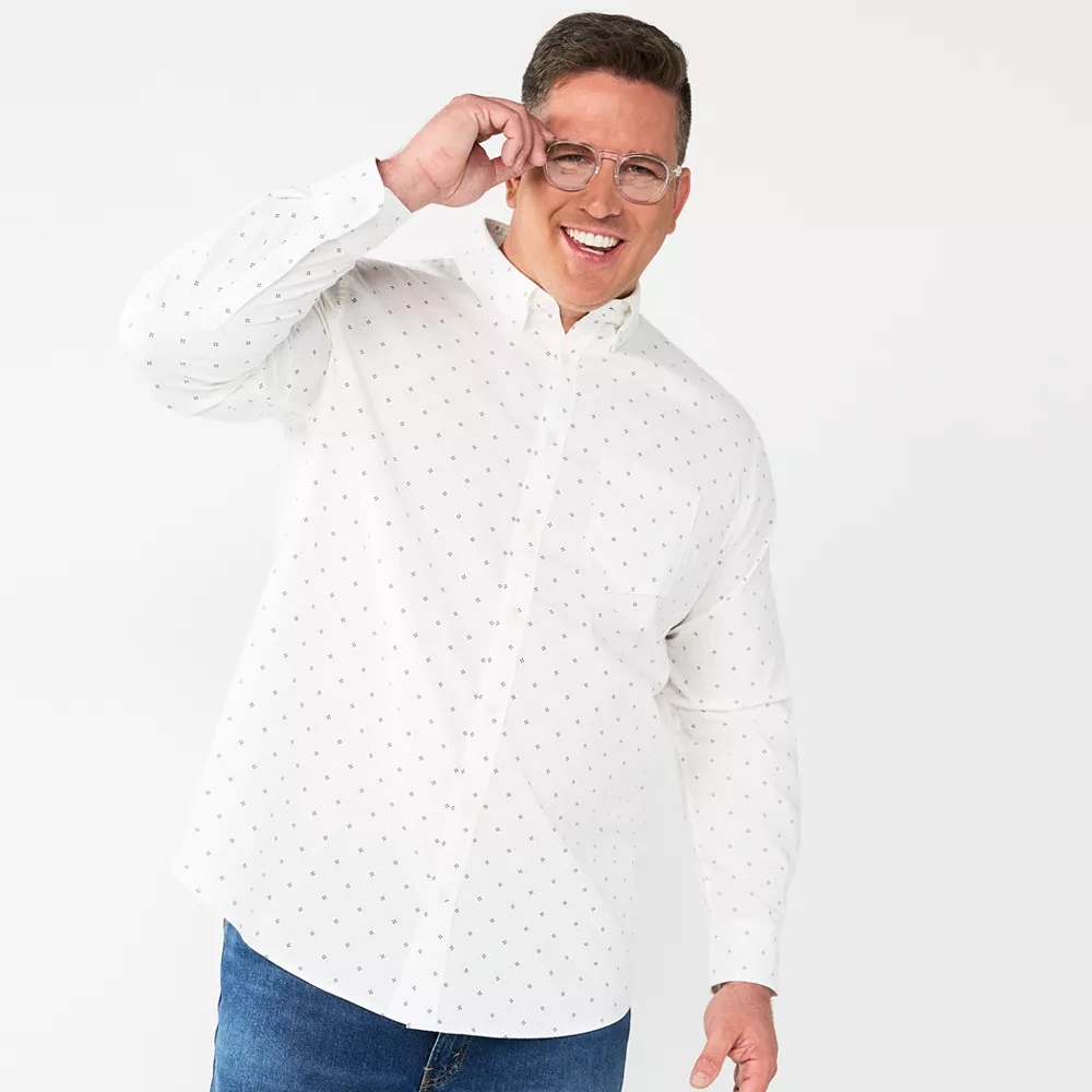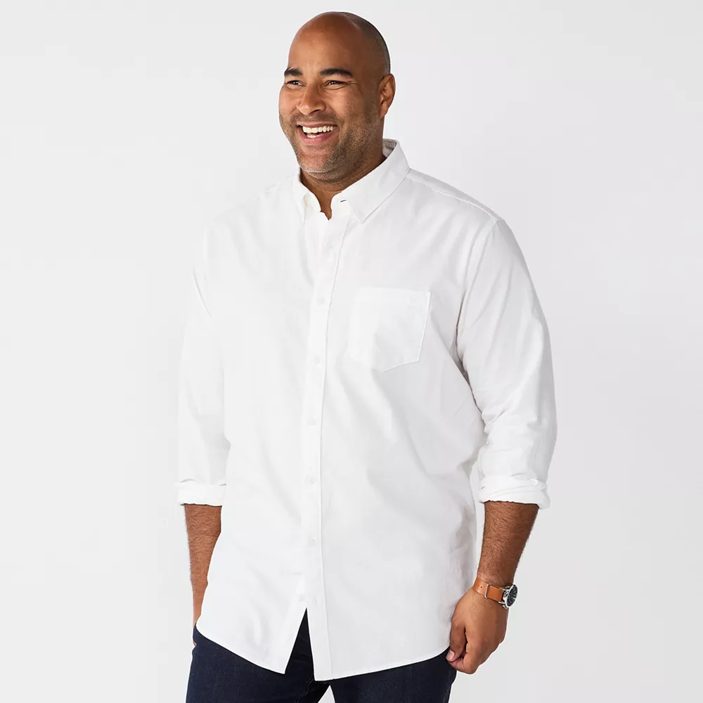 This men’s perfect-length button down shirt Sonoma Goods For Life is just the right length to wear it tucked in or untucked.
