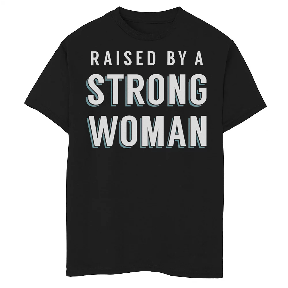 Boys 8-20 Raised By A Strong Woman Text Tee