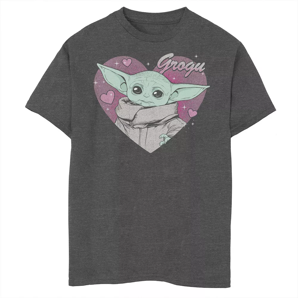He’ll love showing off his cool style with this boys’ Star Wars: The Mandalorian Grogu Pink Hearts Valentine’s Day Graphic Tee.