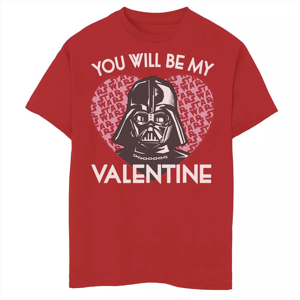 He’ll discover the sweater side of the force with this boys’ Star Wars Valentine’s Day tee.