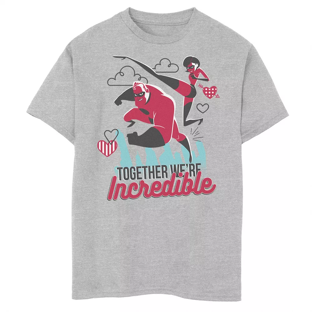 He’ll love showing off his style with this Disney / Pixar’s The Incredibles boys’ Couple Heart Valentine Graphic Tee.