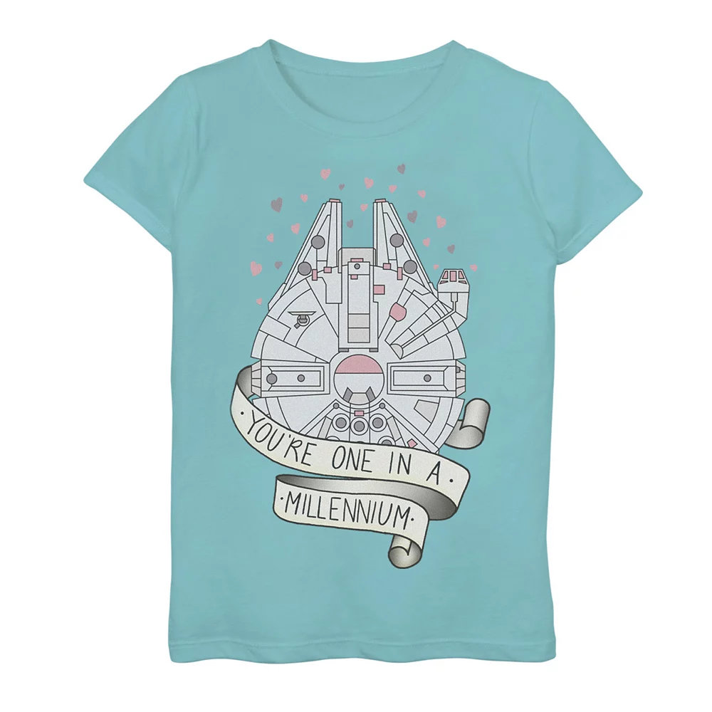She’ll love showing off her style with this girls’ Star Wars Millennium Falcon One In A Millennium Graphic Tee.