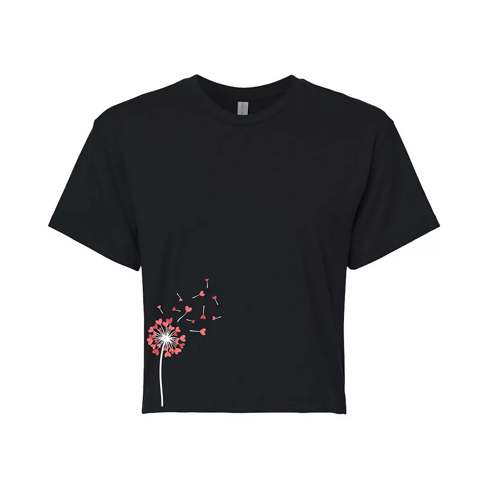 Love is on the wind with this juniors’ dandelion hearts cropped graphic tee.
