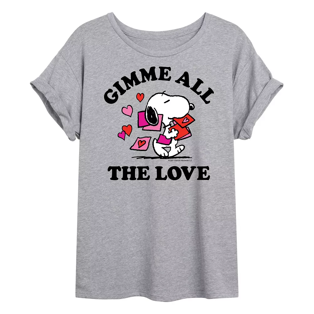 You can’t get enough of love this Valentine’s Day in this juniors’ Peanuts oversized graphic tee.