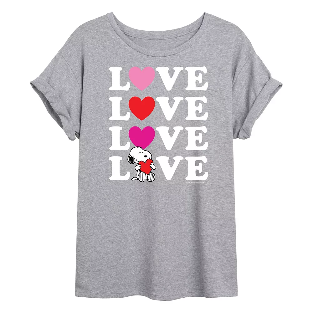 All you need is love, Snoopy, and this delightful Peanuts juniors’ oversized tee.