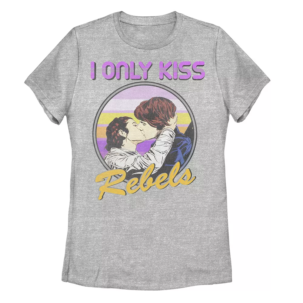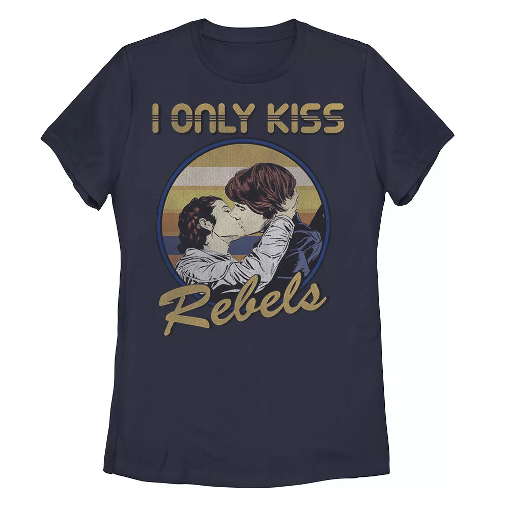 Channel your inner Princess Leia with this juniors’ “I only kiss Rebels” tee.