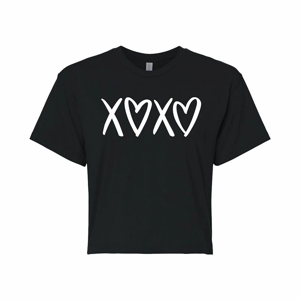 Kisses and hugs abound in this juniors’ “XOXO” heart cropped graphic tee.
