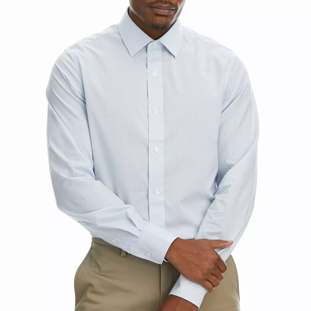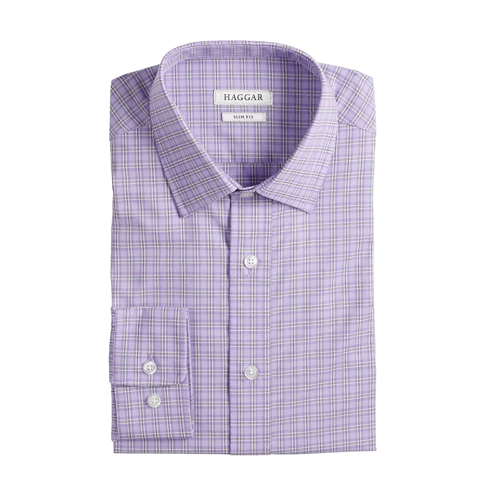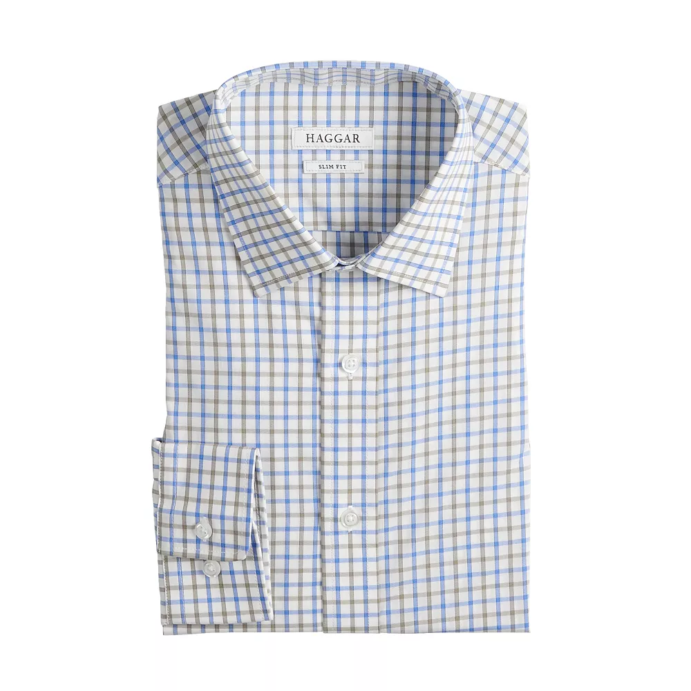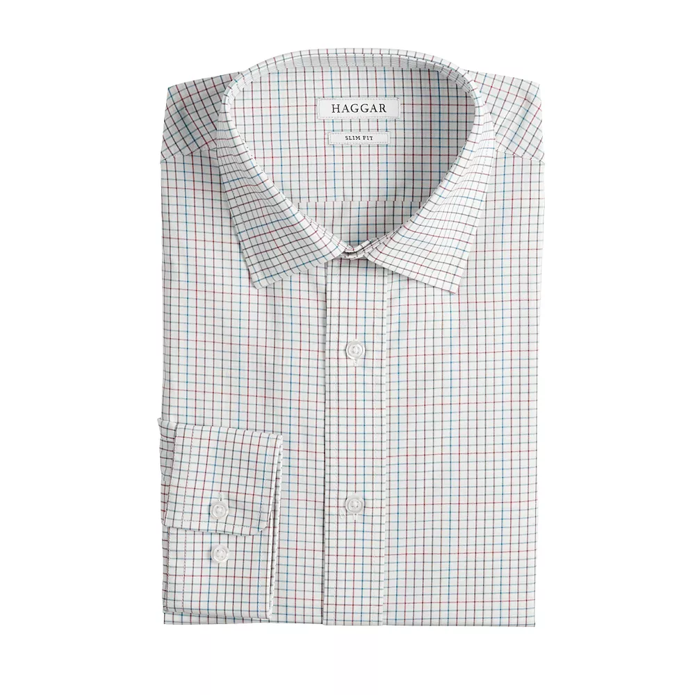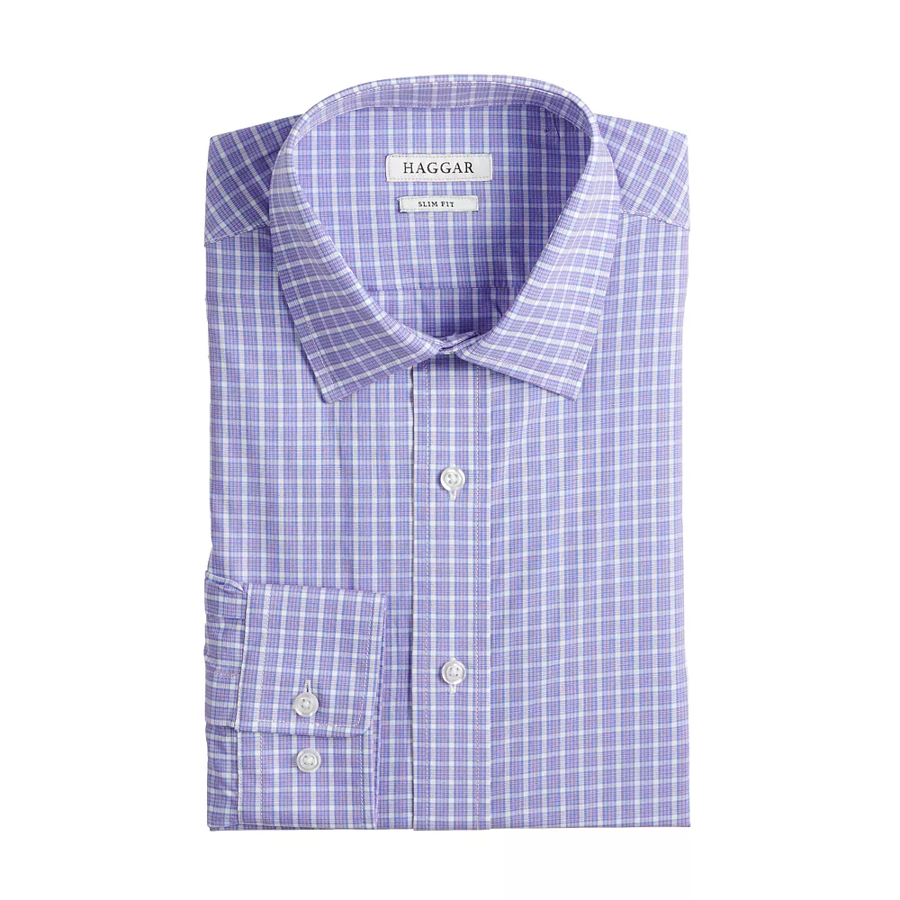 You’ll look perfectly polished sporting this men’s Haggar slim-fit dress shirt.