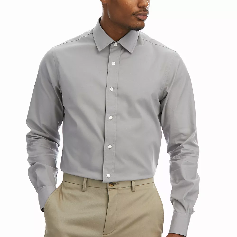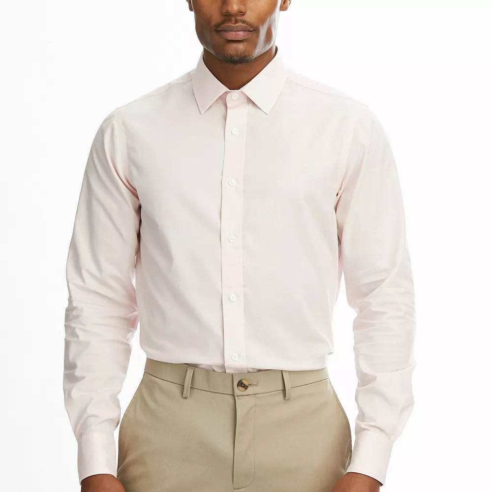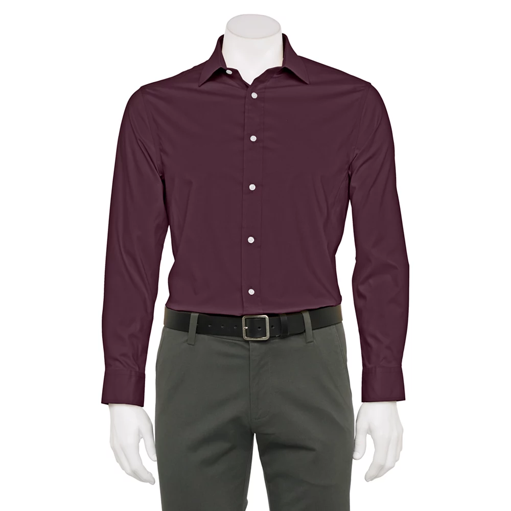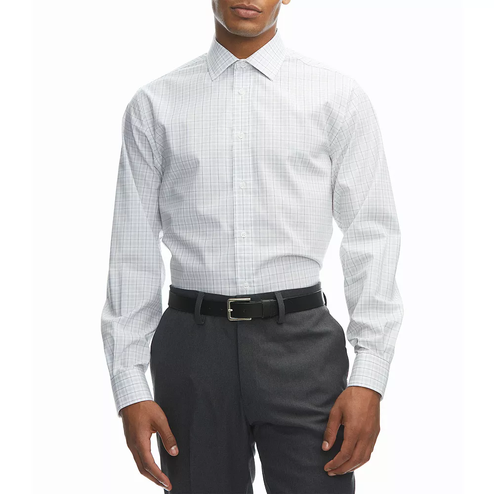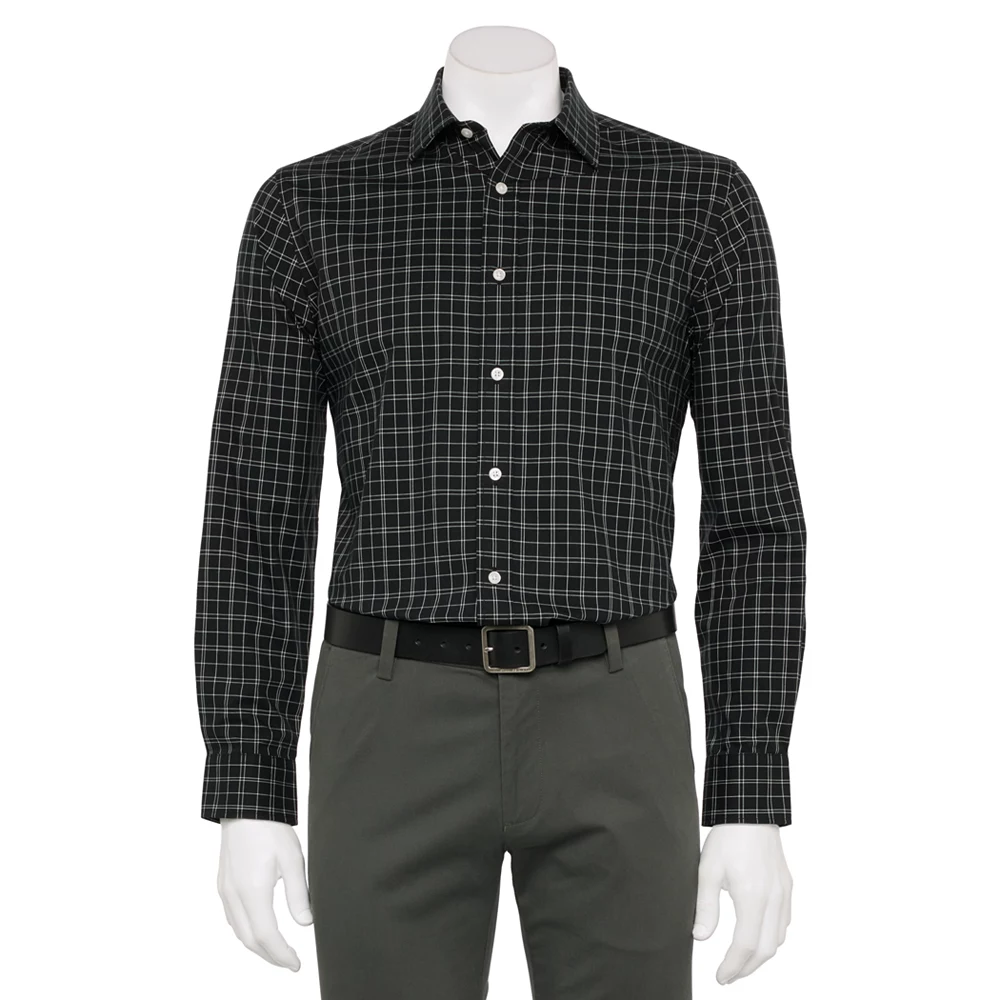 You’ll look perfectly polished sporting this men’s Haggar slim-fit dress shirt.