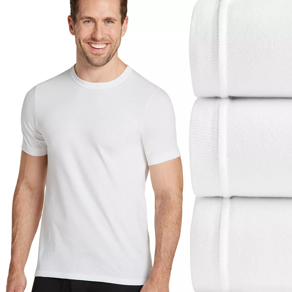 Instant upgrade. These men’s Jockey crewneck undershirts provide a premium cotton construction, lay-flat collar and longer length for enhanced comfort for every day. Twin-needle stitching provides superior durability.