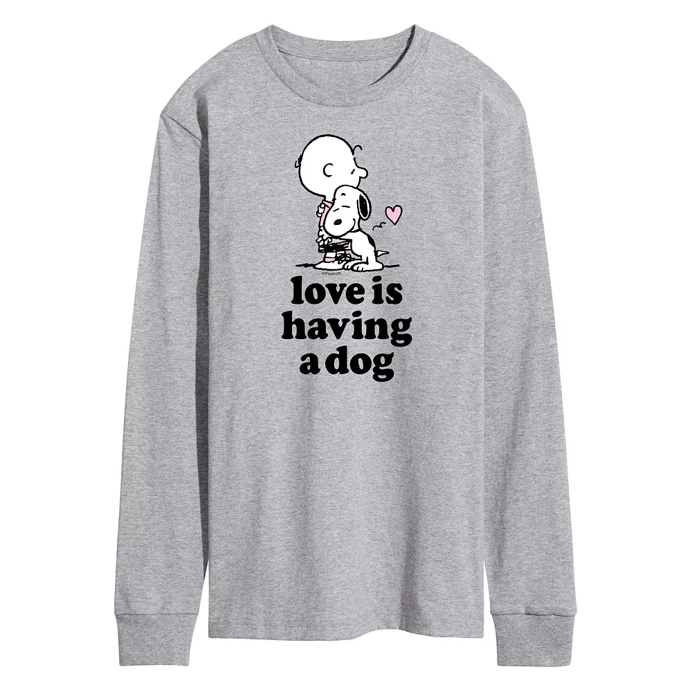 Dog lovers will understand the need to get this Charlie Brown and Snoopy love is having a dog long sleeve graphic tee.