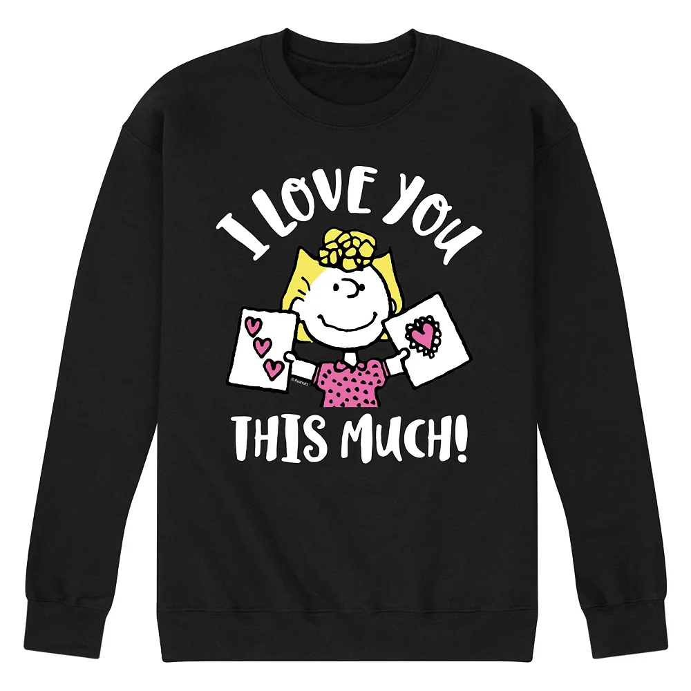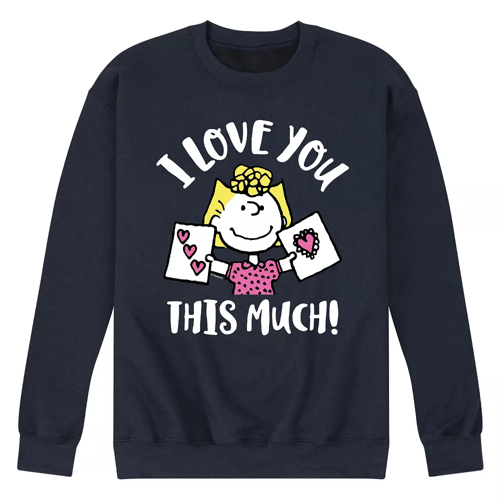 Spread the love this Valentine’s Day with this cute Sally I love you this much graphic sweatshirt.
