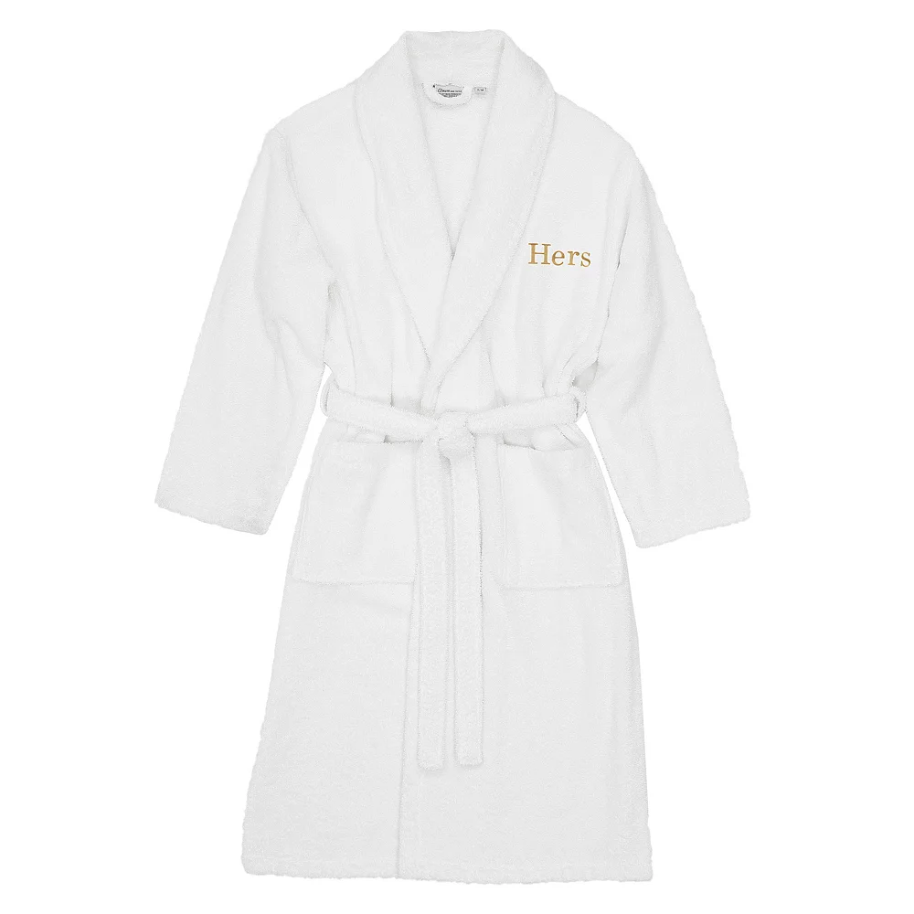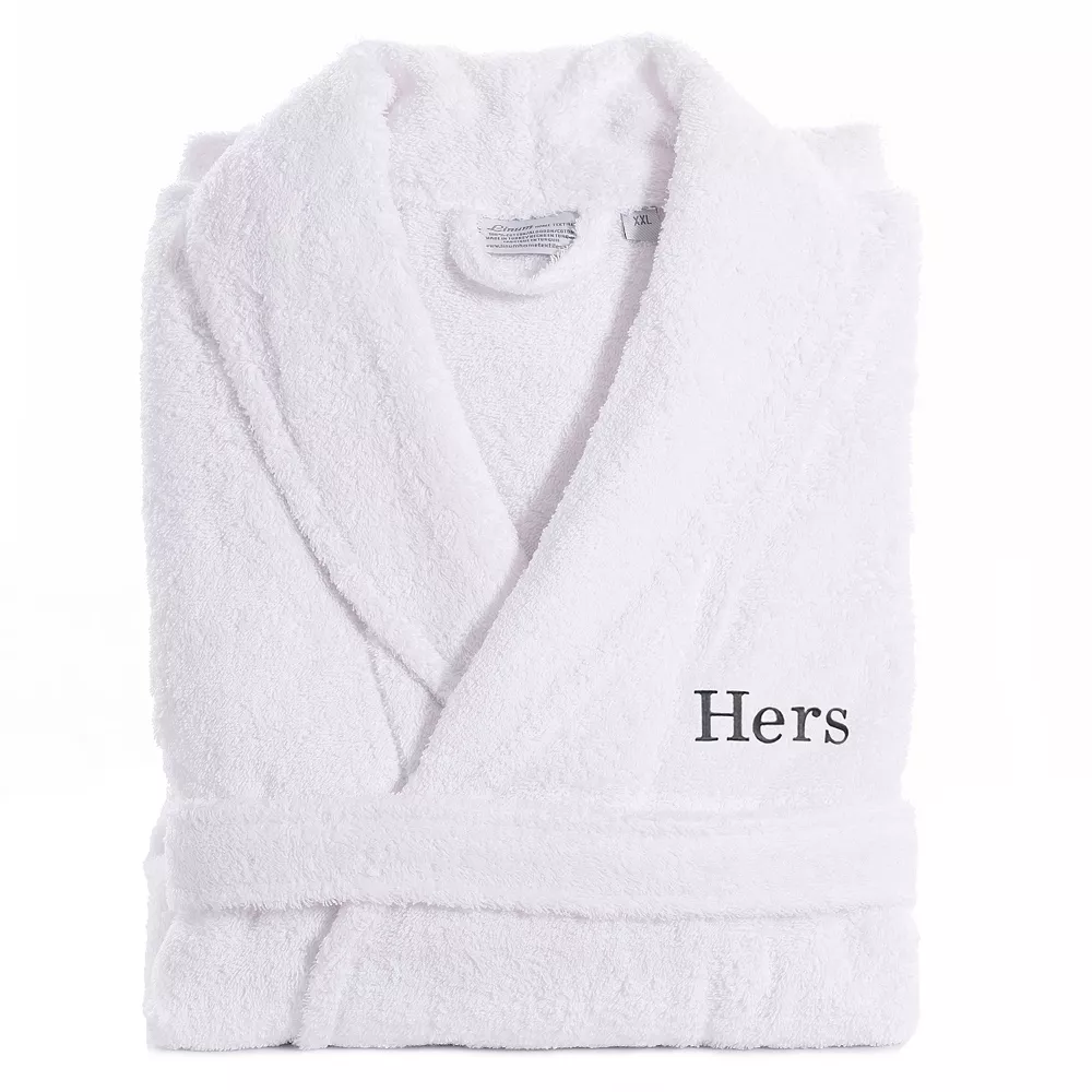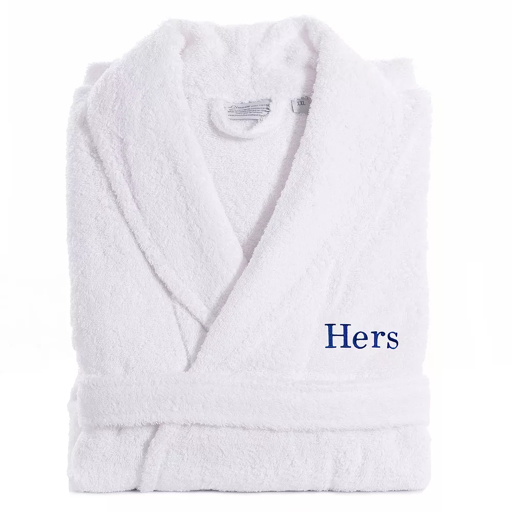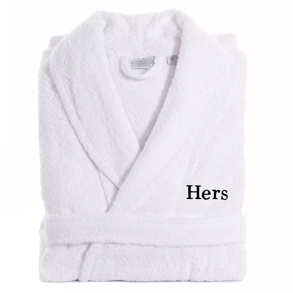 Dry off with style, elegance, and comfort with this luxurious, soft, and absorbent women’s “Hers” terry bathrobe from Linum Home Textiles.